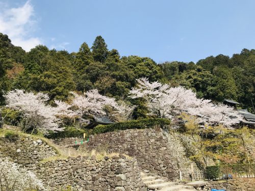 今年も、百々橋から大手前までの南面山裾部の虎口あたりが、入山料が発生しない絶好の散策コースですが、大手道から摠見寺本堂までの石垣と桜の感じも、安土城跡ならではのカメラ?スポットです。
